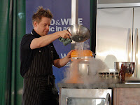 He then went on to use the term at least a half-dozen times during the demo. I'm not sure if this was done tongue-in-cheek, or if there just isn’t a decent term that's synonymous, but either way, I was amused. This video recipe is my version of the spiky-haired chef's dish. I used easy-to-find lamb shoulder chop steaks instead of Colorado lamb ribs, which were quite delicious, but maybe a bit hard to track down. As far as the root beer and toasted sesame glaze goes, when I first heard it, I have to admit it didn't strike me as a great combination, but at the end of the demo, as I sat eating the tender lamb with the sweet, aromatic, nutty sauce, I was a believer. As if the lamb, root beer, and toasted sesame combination wasn't different enough, Blais served it with a coleslaw ice cream. That's right, he used the sweet, tangy juices from a traditional coleslaw recipe, and with the help of liquid nitrogen, he created a surprisingly delicious frozen side dish.