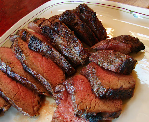 Arugula is also quite a beautiful herb. Fragrant, spicy, crisp; it makes one hell of a good pesto. I paired it with raw almonds for a combo that was just amazing on the grilled hanger steak you can see here. Subtle it's not, but that's okay sometimes.