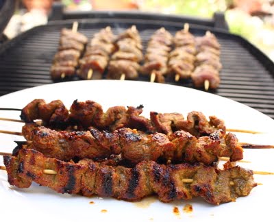 All the ingredients, some of which may sound exotic, should be fairly easy to find in any large, higher-end grocery store. By the way, these skewers can be done with chicken or pork, and I can personally verify they are just as delicious. Enjoy!