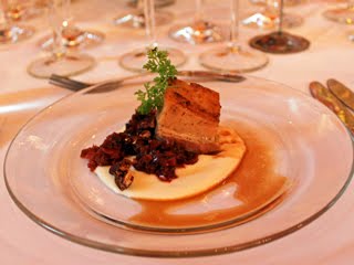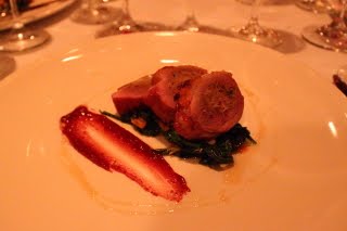 Next we enjoyed a very ambitious plate consisting of tuna involtini with Kurabota pork, beet jam, rusty goat cheese, and avocado oil. This was washed down (do I have a way with words or what?) with J Vineyards' highly regarded Cuvee 20 Brut NV.