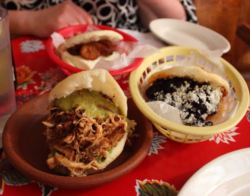 Here you see my newest food obsession, Venezuelan sandwiches called Arepas. We enjoyed these at a place called Caracas Arepas Bar in New York's East Village, and I was completely blown away. How is it possible I've only now just discovered these amazing buns? If you have any information, recipes, tips, or tricks you'd care to pass along, please do. Thanks, and stay tuned!