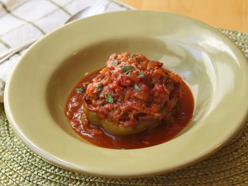 I had a craving for stuffed bell peppers, so naturally your blog was the first place I looked for a recipe. Perhaps this was a seasonally inappropriate dish to make on a hot June day in Texas, but it was delicious! The spicy sausage in the filling was a welcome change. My sauce was a tiny bit too salty for my liking, but that was my own fault - I should have realized it would reduce in the oven, and adjusted my seasoning accordingly.