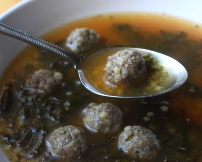 I had a few theories. I figured the greens probably represented money, and symbolized hopes that the bride and groom would enjoy a prosperous union. The soup's signature mini-meatballs were a tougher nut to crack.