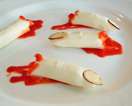 So, the best I can do is a frighteningly quick Halloween-themed re-run recipes post. To make it an even lamer post, other than the cheese fingers below, I don't even really have any typical Halloween recipes, but all these could work well if your planning a party and looking for some ideas. Just click on the title for the original post with ingredients and more info. Boo!! (yes, that was a double entendre)Penne Pasta with Neck Sauce – Perfect for that vampire-themed party!