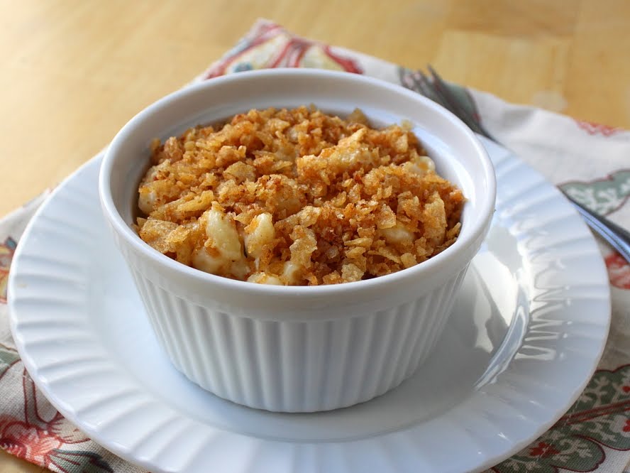 Macaroni and Cheese as Crunchy Potato Chip Topping Delivery System