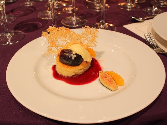The dessert course featured a "Tarta de Almendras" – a buttery almond cake with oranges, figs, and sherry sabayon. The plate was topped with what I initially though was a "shredded wheat crisp" (thanks a lot, too much wine), but what turned out to be a tangle of caramelized parmesan.