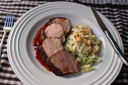 I remembered seeing Alton Brown use cocoa in a rub for chicken, and since I had a pork tenderloin sitting in the fridge, just a shelf away from a jar of black cherry preserves, I figured, why not?