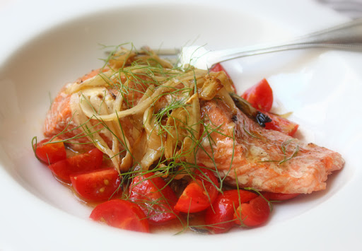 As I was eating this fennel-smoked salmon recipe, I was also enjoying a baseball game on the radio. During a critical point in the game, one of the players was thrown out trying to take an extra base; a major blunder, which the announcer blamed on, "trying to do too much." I had to chuckle, since I had just done the same thing with the salmon.