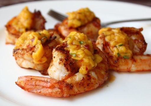 This mango relish is wonderfully versatile and infinitely adaptable. It might be at its best simply enjoyed with tortilla chips, but a close second would be as I used it here, to dress some kind of spicy meat. It was crazy good on these shrimp. Promise me you will give it a try soon…or at a future date. Enjoy!