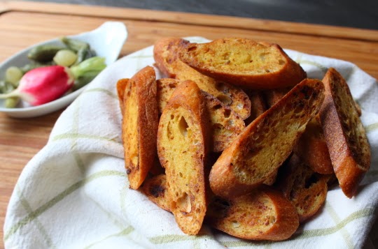 For a first attempt I was very happy with the results. These had the same crispy crunch of traditional crostini, but also offered a fairly noticeable, mustardy zing.