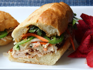 * To make the pickled daikon and carrot, use equal parts and toss in enough seasoned rice vinegar to coat well. Let sit for 15-20 minutes, or until the veggies get slightly limp. Drain and use, or refrigerate. If using regular vinegar, add a pinch of salt and sugar.