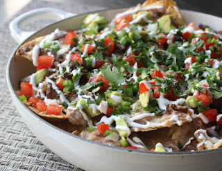 These would be much better if you did them "Texas Style" and spread each chip out on a parchment lined baking tray, and topped each nacho individually. Yes, it does take much more time, but the pay out with even distribution of toppings makes it worth wile, and no dry sad topping less chips at the bottom of the bowl.