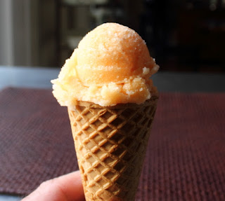 Makes just over a quart of Cantaloupe Cayenne Sorbet: